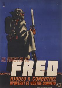 .1937.. CARTEL: .(GUERRA CIVIL Y REPÚBLICA).. .DAG:. .AL FRONT HI FA FRED.. Barcelona: Grafos col.lectivitzada. Litografía. 99 x 68,5 cm (39 x 27 in). Entelado, leves restauraciones periféricas, A.