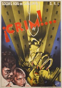 .1937 ca.. CARTEL: .(GUERRA CIVIL Y REPÚBLICA).. .MOLINA:. .SOCORS ROIG DE CATALUNYA. ¡CRIM!.. Barcelona: Lit. Barguño. LItografía. 100 x 70 cm. (39,5 x 27 in). Entelado, A.