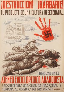 .1937 ca.. CARTEL: .(GUERRA CIVIL Y REPUBLICA).. .DESTRUCCION ¡BARBARIE! EL PRODUCTO DE UNA CULTURA DEGENERADA. INGRESAD EN EL ATENEO ENCICLOPEDICO ANARQUISTA Y ADQUIRIREIS UNA CULTURA RACIONAL Y HUMANA AL SERVICIO DEL PROGRESO.