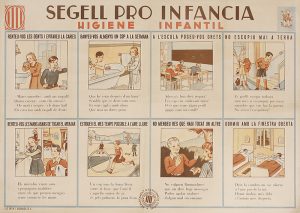 .1935 ca.. CARTEL: .(GUERRA CIVIL-EDUCACIÓN).. .LIENES; HENRY:. .SEGELL PRO INFANCIA. HIGIENE INFANTIL.. Litografía. 84 x 115 cm (33 x 45 in). Entelado, A.