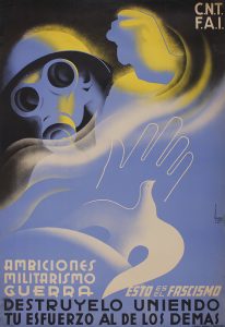 .1937 ca.. CARTEL: .VILATO, BADIA:. .AMBICIONES, MILITARISMO, GUERRA. ESTO ES EL FASCISMO.. Litografía. 74 x 110 cm (29 x 43 in). Entelado, pequeñas reconstrucciones en el margen superior y derecho, leves restauraciones periféricas, B.