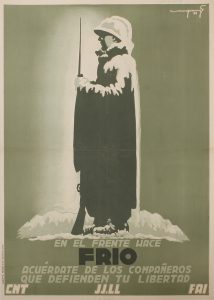 .1939.. CARTEL: .(GUERRA CIVIL Y REPÚBLICA).. .COMPANYS:. .EN EL FRENTE HACE FRIO. ACUERDATE DE LOS COMPAÑEROS QUE DEFIENDEN TU LIBERTAD.. Barcelona: Marti, Mari y Cia. 17 de Enero de 1939. Ed.: C.N.T.-JJ.LL-FAI. Litografía. 100 x 70 cm. (39,2 x...