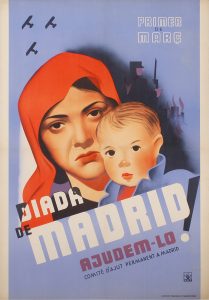 .1938.. CARTEL: .(GUERRA CIVIL Y REPÚBLICA).. .PRIMER DE MARÇ. DIADA DE MADRID! AJUDEM-LO.. Barcelona: I.G. Seix i Barral E.C; Ed.: Comité d´Ajut Permanent a Madrid. Litografía. 98 x 69 cm (39 x 27,5 in). Entelado, leves señales de doblez. A -.
