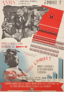 .1936.. CARTEL: .(GUERRA CIVIL Y REPÚBLICA).. .ANTES CAMPESINOS, POBRES, FAMELICOS (...) AHORA EL CAMPESINO TRABAJA Y ES FELIZ ¿PORQUE? PORQUE LA REPUBLICA LE HA DADO TIERRAS Y CREDITOS.. Ed.: Subsecretaría de Propaganda. Litografía y...