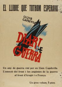 .1937.. CARTEL: .(GUERRA CIVIL-PUBLICIDAD PUBLICACIONES).. .CAPDEVILA:. .EL LLIBRE QUE TOTHOM ESPERAVA. DIARI DE GUERRA.. Litografía a color. 34 x 24 cm (13,4 x 9,5 in). B-. Pequeñas pérdidas en las esquinas del lado derecho. B-. [Más:] .VISIONS...