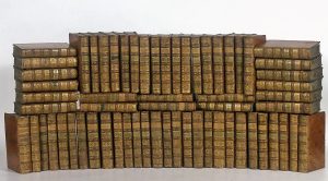 nations connues [...]. Paris, Didot [- Rozet, Panckoucke], 1748 [- 1770]. 75 (sur 80) vol. in-12°; frontispice et 588 h.-t. (manquent les vol. Xliv, Lxxvii, Lxxviii, Lxxvix, Lxxx, texte n.c., lég. us., pet. défauts, qqs pl. déreliées, qqs +/-grandes mouill., qqs grandes taches). Rel. de l'époque : pleine basane marbrée, dos fleuronnés dorés à nerfs, tr. jaspées de bleu (lég. us., pet défauts et pet. manques). Édition originale de cette jolie collection. Illustré d'un frontispice et de 588 planches hors texte d'après Ch.-N. Cochin et N. Bellin figurant des cartes (dépliantes), des vues, des scènes de la vie quotidienne, des animaux, des autochtones, des instruments de musique, des monuments, etc. Ouvrage débuté, des volumes I à VII, par une traduction de Prévost (1697-1763) de l'ouvrage de John Green "A new general collection of voyages and travels [...]" (éd. orig. : Londres, 1745-1747). Continué par J.-Ph. Rousselot de Surgy (né en 1737), A.-G. Meusnier de Querlon (1702-1780), Ét.-M. Chompré (1707-1784) et Al. Deleyre (1726-1796). # Chadenat 2111 ("Cet ouvrage, véritable encyclopédie des Voyages, est la base indispensable de toute bibliothèque américaine"); # Sabin 65403 (mentionne en plus 2 vol. d'atlas in-4°); # Barbier II- 810/811 (éd. in-4°); # Brunet IV-868; # Cohen 824 (éd. in-4°). Provenance : Dacquet 1752-1753 (mention d'app. ms.).