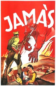 .(1936 CA.).. CARTEL: .(GUERRA CIVIL Y REPÚBLICA).. .JAMÁS!.. Litografía. 92 x 60 cm (36 x 23,6 in). A-. Entelado.