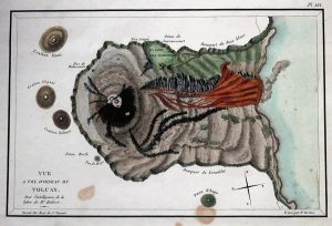 planches. Paris, F. Buisson, An Xiii (1804). In-f° : 4 pp.; 58 h.-t. (mouill., pet. rouss., bords de qqs pl. salis, plis marg. à certaines, qqs taches). Cartonnage d'édition rouge : plein papier, plat sup. avec étiq. titrée, dos lisse (usée, mors part. fendus, manques aux coiffes, coins fort émoussés...). Édition originale de l'atlas seul, sans les 3 volumes de texte in-8°. Illustré, sur simples pages ou feuillets dépliants, de 3 cartes (mers d'Afrique, ïles de France et de la Réunion, ïle de la Réunion) et de 55 eaux-fortes (pl. LVI rehaussée) figurant des vues (Ténériffe, grotte de Rosemond, environs de la rivière d'Abord...), des plantes (Ficus pertusa, Aubertia borbonica, Scirpus iridifolius...), des rivières et cascades (disposition des laves basaltiques dans la rivière de St Denis, cascade et rivière des Roches...), des poissons et mollusques (carinaire fragile, scombre pelamide...), des tortues (tortue à trois arètes et Patelle de Bourbon), des montagnes (Morne...) et des volcans (Mascareigne, piton des Neiges, cratère Dolomica...). L'officier militaire et naturaliste frangais Bory de Saint-Vincent (1778- 1846), participa à l'expédition autour du monde du commandant Nicolas Baudin (1754- 1803) mais la quitta et resta à la Réunion et à l'ïle Maurice. Il effectua le premier l'ascension et la description du Piton de la Fournaise. Il fut élu à l'Académie des sciences en 1834. # Chadenat 529 (ex. complet).