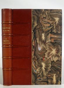 (Asie, Chine) — Ollone, Henri d'.- Les Derniers Barbares. Chine - Tibet - Mongolie. Paris, Pierre Lafitte, 1911. Gr. in-4° : [6]-371-[4] pp.; 2 h.-t. Rel. de l'époque : demi-chagrin brun, filet doré cernant les plats de papier marbré, dos à...