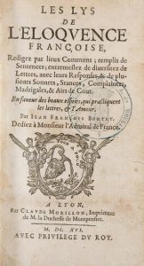 BERTET (J.Fr.). Les lys de l’éloquence françoise... rédigez par lieux communs. Lyon, Morillon, 1616. In-12, demi basane (reliure postérieure).