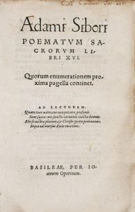 SIBERI (Adam). Poematum sacrorum libri XVI. Basel, Johan Oporin, Mars 1556. In-8, velin souple ivoire (reliure de l’époque).