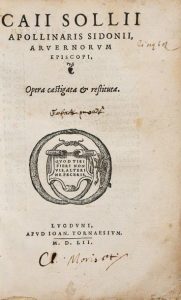 SIDOINE APOLLINAIRE. SIDOINE APOLLINAIRE. Opera castigata et restitua. Lyon, Jean de Tournes, 1552. In-8, velin ivoire, …