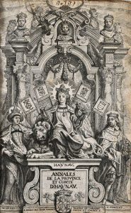 VINCHANT (François). Annales de la province et comté de Haynau où l'on voit la suitte des Comtes depuis leur commencement, les antiquitez de la religion, et de l'estat depuis l'entrée de Jules César dans le pays. Mons, J. Havart, 1648. In-folio de [14]-418-[14] pages, basane mouchetée, dos à nerfs orné, tr. rouges (reliure de l’époque).
