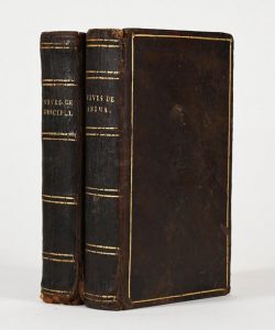 VIVES (J. Louis). De anima et vita libri tres.. Argumenti Amerbachii de Anima libri IV. Lyon, Antoine Vincent, 1555. – De Disciplinis libri XX. Lyon, Jean Frellon, 1551. Ensemble de 2 volumes in-8, veau brun, filets dorés, tranches dorées (reliure ancienne).