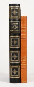 ABOUT (E.). Le nez d’un notaire. P., Calmann-Lévy, 1886. In-8, demi-maroquin fauve, couv. et dos. Illustrations par G. Bichard. Ex. num. Rousseurs. On joint du même : Le roi des montagnes. P., Hachette, 1861. In-8, demi-chagrin noir, dos orné. Illustrations de G. Doré. Rousseurs. Ensemble 2 volumes.