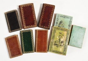 (Almanach). PETITES HEURES DES DAMES OU ETRENNES DE SAGESSE. Le Fuel, maroquin rouge, - LA PARNASSE LYRIQUE DES DAMES. Marcilly, 1816. Cartonnage illustré, étui - PETIT ALMANACH DES DAMES. Rosa. Maroquin pétrole, veau havane. Années : 1811-1821