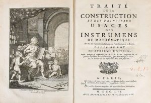 BION (N.). Traité de la construction et des principaux usages des instrumens de mathématique. Paris, Jombert & Nion fils, 1752. In-4°, basane marbrée, dos à nerfs orné, tranches rouges (reliure de l’époque).