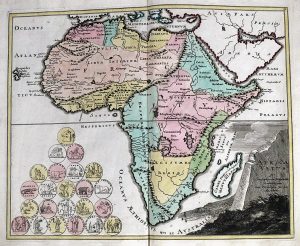 montées sur onglets (manque la carte "Hispania", déch. marginale sans perte à la carte 43, taches brunes sur la dern. carte). Rel. de l'époque : demi-vélin peint en rouge, dos à nerfs (non rogné, fortes us., mors fendus, rel. défraïchie). Édition originale et unique de cet atlas historique comportant un titre gravé figurant le géant Atlas en tunique romaine et 43 (sur 43) jolies cartes d'après Coccejo, Coronelli, Gale, Ligorio, Reland et autres. Toutes agrémentées de cartouches historiés et/ou de médailles. # Phillips 30.