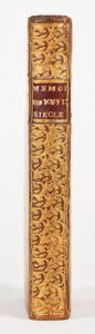 DUCLOS (Charles Pineau). Mémoires pour servir à l’histoire des mœurs du XVIII° siècle. S.l. ni nom, 1752. 2 parties en 1 volume in-12, veau blond, dos lisse orné (rel. de l’époque).