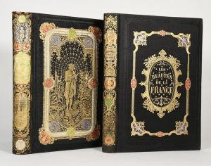 GIRAULT DE SAINT-FARGEAU. Les beautés de la France. P., Blanchard, 1850. In-8, percaline polychrome. Nom. Ill. h.t. Rousseurs, défauts à la reliure. – GOLDSMITH. Le vicaire de Wakefield. P., Lecou, Hetzel, (vers 1844). In-8, percaline polychrome. Ill. h.t. de Johannot. Rousseurs, défauts à la reliure. Ensemble 2 volumes.