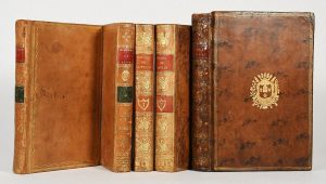 GRESSET. Œuvres. Paris, Volland, 1794. 2 vol. veau blond, tr. dorées (nbses figures) – CATULLE. Poésies. Paris, Léger, 1803. 2 vol., veau , tr. dorées – BERNARD. L’art d’aimer. Paris, 1775. 1 vol., veau, plats aux armes de l’université de Paris (figures). Ensemble 5 volumes in-8 en reliure de l’époque.