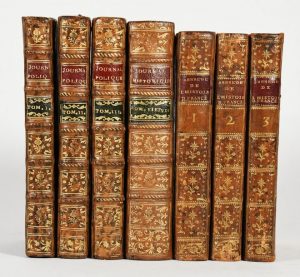 Bon exemplaire. On joint dans un format identique 4 tomes reliés du Journal Historique. Londres, 1775. Ensemble 7 volumes.