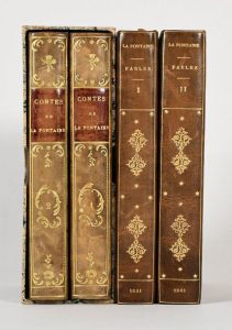 LA FONTAINE. Fables. P., Charavay, 1881. 2 vol. in-12, demi-basane marbrée, dos orné, couv. et dos. On joint du même : Contes. P., Lib. Des Bibliophiles, 1892. 2 vol. in-12 demi-basane, dos orné, étui. Nomb. ill. h.t. dos passé. Ensemble 4 volumes.