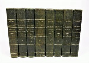 Edition originale. Les trois premiers volumes sont consacrés aux missions de la Chine, le quatrième aux Indes, les deux suivants aux missions du Levant, et les deux derniers à celles de l'Amérique. De la bibliothèque Henri Gouin, avec ex-libris. Légers frottements aux plats, petits manques aux reliures de 2 tomes.