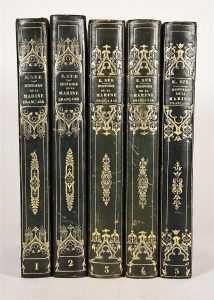 SUE (Eugène). Histoire de la marine française. Paris, F. Bonnaire, 1835-1838. 5 volumes in-8, demi veau vert, dos lisse orné en long de fers romantiques dorés, tranches jaspées (reliure de l'époque).