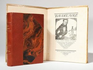 BAUDELAIRE (C). Treize petits poèmes en prose. Bois gravés par Gérard Cochet. Cherbourg, l’Ascalabe. 1925. In-8 broché. Rousseurs. - Les Fleurs du Mal. Bois gravés par Denis Volx. P., Louis Conard. 1922. In-8 demi velin bradel à coins, couv. Ensemble de 2 volumes.