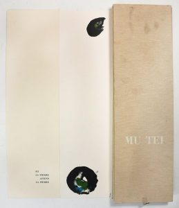 DEBRE (O.) – LAMBERT (J-C). MU TEI. Paris, Le Limitrope, Atelier Clot Imprimeur, 1982. In-8 en long, portefeuille toilé de l’éditeur.