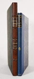 LARRETA (E). La lampe d’argile. Frontispice et ill. de Fornerod. Bordeaux, Gounouilhou, 1915. Petit in-4°demi percaline bleue, couv. Tiré à 300 ex., celui-ci non justifié. Envoi signé de l’auteur. On Joint : DUMAS (A). La tulipe noire. Illustrations de Charles Morel. P., Calmann Lévy, s.d. In-4° demi chagrin brun. Ensemble de 2 volumes.