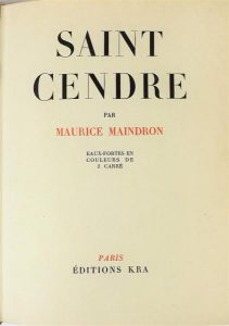 MAINDRON (Maurice). Saint Cendre. Paris, Kra, 1929. In-8, velin bradel ivoire, dos lisse, couvertures et dos (T. Steibel).
