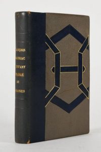 MAURIAC (F.). L’enfant chargé de chaînes. Paris, Grasset, 1926. In-12, maroquin gris et bleu, plats ornés d’un décor géométrique, dos lisse, tête bleue, couvertures et dos.