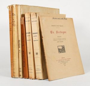 [REGIONALISME DIVERS] – THARAUD. En Bretagne. Ill. de Pottier. P. Horizons, 1927. – DELVAU –HUYSMANS. La Bièvre. Bois de Latour. P., Corrozet, 1922. – BERNOUVILLE. Le pays des basques. Dessins de I. Bernouville. P., Horizons, 1930. – ESCHOLIER. Gascogne. Dessins de Cl. Serveau. P., Horizons, 1929. – LINZELER. En Lorraine. Ill. de Guillonnet. P., Crès, 1917. – PRAJOUX. Roanne autrefois et aujourd’hui. Roanne, Souchier, 1921. (2 exemplaires). Ensemble de 7 volumes in-8 brochés.