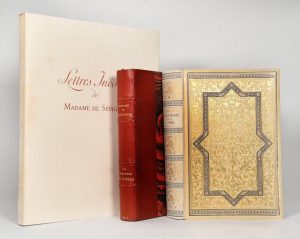 SEVIGNE (Mme de). Lettres inédites. Illustrations en couleurs de Madeleine Lemaire. P., A la Marquise de Sevigné, 1913. In-4° broché. Ex. numér. sur velin. Envoi signé de Judith Gautier et Madeleine Lemaire. – LAFAYETTE (Mme de). La princesse de Clèves. P., Piazza, 1922. In-8 demi velin bradel à coins, couv. Ex. numér. sur velin. – CERFBERR (G) et RAMIN (M.V.). Dictionnaire de la femme. Ill. de 487 vignettes. P., Firmin-Didot, s.d. In-8 reliure ornée de l’éditeur. Ensemble de 3 volumes.