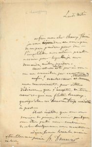 Excusez-moi et recevez mes remerciements pour votre dédicace que j'accepte de tout coeur et qui me flatte beaucoup, quoiqu'elle m'honore trop modestie à part. Il est inutile que vous vous donniez la peine de venir puisque vous êtes pressé nous causerons de cela lorsque nous nous rencontrerons»...