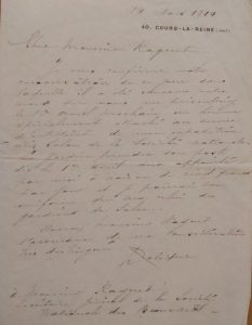 L.A.S. «RLalique», 14 mars 1914, à Eugène RAGUET, secrétaire général de la Société Nationale des Beaux-Arts; 1 page in-8 à son adresse.