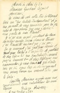 L.A.S. «Diego Rivera», Paris 4 mai 1920, à Gustave COQUIOT; 1 page in-8.