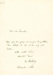 L.A.S. «H. Berlioz D, dimanche matin, au pianiste Louis LACOMBE; sur 1 page in-8 (petite fente au bord inf.).