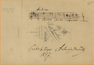 Au dos de sa photographie (par J. Mulač à Prague), Dvořák a inscrit les trois premières mesures de son Stabat Mater, chant et paroles, avec l’indication Andante : « Stabat Mater dolorosa »… Au-dessous, la date en tchèque et la signature : « Praha 6 brĕzna 1897. Antonίn Dvořák ».