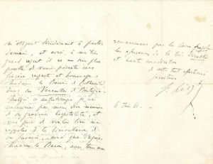 L.A.S. «F. Liszt», 6 juin 1861, [au baron James de ROTHSCHILD]; 2 pages et demie in-8.