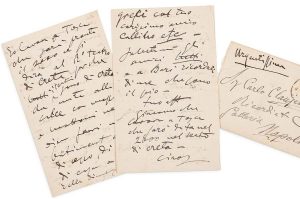 Puccini travail sur Tosca qui sera prêt en l'an 2000, et joué au Théâtre royal de Crète («Io lavoro a Tosca chi sarà pronta il 2000 ce si darà alr R° teatro di Creta perche tutti i teatri sono di creta» [jeu de mots sur le nom de l'île Creta, et le mot creta, argile]), édifice digne d'un water-closet ou d'un théâtre domestique, selon sa taille... Carlo est une personne très sympathique, et pas en argile, quoique tous les fils d'Adam descendent de la même femme. Il est toujours son thuriféraire infatigable ! Et Puccini adore ça. Il lui écrit avec divers petits verres de liqueurs devant lui; s'ils étaient ensemble, il lui donnerait à boire... Il le charge de saluer Lombardi et de lui dire que Vanso ira bientôt à Cuba. Il faut que Carlo aille à Bari pour protéger La