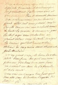 Mde de Sévigné et Deshoulières pour toutes les choses charmantes que votre aimable esprit et surtout votre excellent coeur vous dictent au sujet de ma restauration academique ne vous attendez pas que je vous paye en aussi jolie monnoye il y a toujours un peu d'alliage dans nos jettons au lieu que chés vous tout est franc tout est fin et tout est pur comme vous. Mais chère Rose l'esprit ne suffit pas il faut songer en meme tems au corps qui a bien son merite aussi. Tachés donc tous et toutes tant que vous etes de resister au torrent qui entraîne tant de gens a l'hopital et de l'hopital, Dieu sçait où. J'espere d'icy a deux jours que mes travaux agricoles financiers et academiques me permettront d'aller vous voir et vous remercier d'un si aimable souvenir. Mon academicienne ne me laissera point aller seul vous pouvés compter sur elle comme sur une veritable amie de toute la maison a commencer par le chef a qui nous souhaitons un promt retour vers la santé malgré la douceur qu'il doit trouver a etre entouré de cinq ou six aussi charmantes garde-malades»...