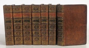 en 7 vol. in-8° : [10]-607, [6]-688, [6]-732, [8]-616, [20]-451, [2]-564, [4]-432-144 pp. (qqs pp. lég. jaunies, marges de certains titres salies ou avec rouss., préface du vol. Iv courte de marges, très rares déch. marg. et rouss. sinon en bonne condition). Rel. de l'époque : plein veau marbré, plats sertis de filets à froid, dos fleuronnés dorés à nerfs, tr. rouges (mors frottés, qqs mors part. fendus, mouill. et pet. restaurations au plat inf du vol. Vpars Ii, coupes et coins lég. émoussés, qqs gardes sup. part. découpées). Seconde édition (éd. orig. : 1739-1744) des cours du célèbre médecin hollandais Boerhaave (1668 - 1746), professeur à Leiden, basés sur son manuel "Institutiones rei medicae". Donnés avec des commentaires et des annotations de ses étudiants et en particulier d'Albrecht von Haller (1708-1777), disciple le plus fervent de Boerhaave et qui joua un role majeur en anatomie. # Bibl. Wall. 1222 (coll. des 2 prem. vol. diff.); # Wellcome II-190 (8 vol.); # pas dans Garrisson & Morton. Provenance : Dr Francois Moutier (ex-libris).