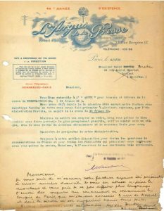 6 février 1922, sur un rappel de paiement de l'Argus de la Presse: Breton corrige son nom dactylographié «Berton» en «Breton», et présente ses excuses, la facture «ayant été présentée à mon ancien domicile.