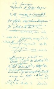 L.A.S. «LF», [Klarskovgaard] le 4 [février 1950], à «Mon cher Vieux» [Jean-Gabriel DARAGNÈS]; 2 pages in-fol. au stylo bille bleu.