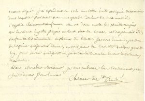Très rare lettre au sujet d'un de ses premiers écrits politiques.