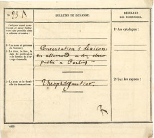 Bulletin de demande à la Bibliothèque Nationale du «Conversation's