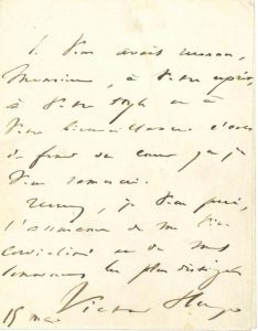 L.A.S. «Victor Hugo», 15 mai; 1 page in-12.